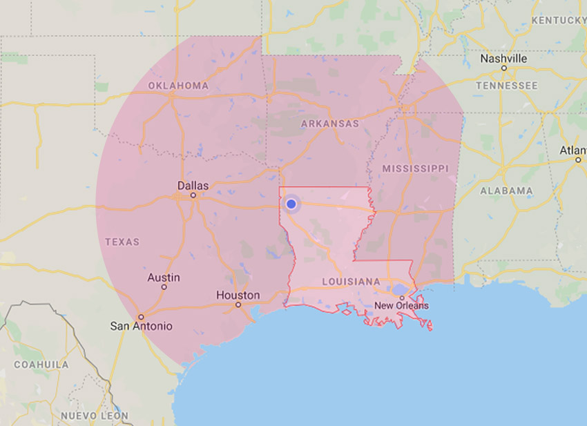 Free delivery on our truck in Louisiana, Arkansas, E. Texas, E. Oklahoma and Mississippi (plus Memphis, Tennessee).